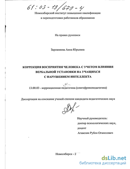 В этой связи изучение особенностей подверженности влиянию вербальных установок детей с нарушением интеллекта и их учет в ходе коррекци-онной работы по преодолению недостатков восприятия человека у этой категории детей представляется нам особенно актуальным, так как является способом повышения ее эффективности, что в свою очередь способствует