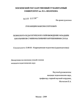 Рекомендации по использованию. Материалы диссертационного исследования можно использовать в работе учителей начальных классов, в ходе разработки учебных курсов и дисциплин для подготовки специалистов в области коррекционной педагогики (при обучении студентов педагогических колледжей и ВУЗов). Предложенная модель сопровождения младших школьников с минимальными нарушениями слуха реализована в условиях Южно-Кузбасского региона и возможно транслирование опыта сопровождения на другие регионы.
