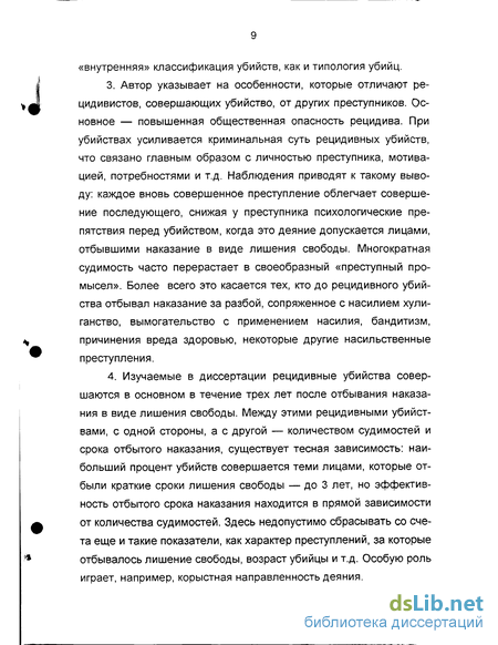 Изучаемые в диссертации рецидивные убийства совершаются в основном в течение трех лет после отбывания наказания в виде лишения свободы. Между этими рецидивными убийствами, с одной стороны, а с другой — количеством судимостей и срока отбытого наказания, существует тесная зависимость: наибольший процент убийств совершается теми лицами, которые отбыли краткие сроки лишения свободы — до 3 лет, но эффективность отбытого срока наказания находится в прямой зависимости от количества судимостей. Здесь недопустимо сбрасывать со счета еще и такие показатели, как характер преступлений, за которые отбывалось лишение свободы, возраст убийцы и т.д. Особую роль играет, например, корыстная направленность деяния.