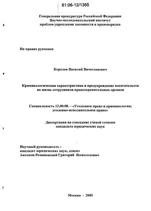 - Криминологическая характеристика деяний, связанных с посягательством на жизнь сотрудников правоохранительных органов