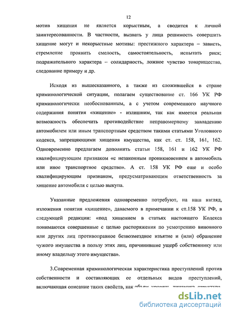 2.0снованные на сравнительном анализе уголовно-правовых норм и общего понятия «хищения собственности» предложения по уточнению конструкции норм о краже и угоне автотранспорта.