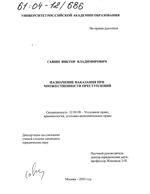 Диссертация представляет собой первое комплексное, монографическое исследование теоретических и практических вопросов множественности преступлений, порядка и пределов назначения наказания при множественности преступлений, выполненное на основе принципиально новых позиций, отраженных в Уголовном кодексе РФ 1996 года и новом Уголовно-процессуальном кодексе Российской Федерации 1997 года. По сравнению с Кодексом 1960 года правила уголовно-правовой оценки совершения одним лицом нескольких преступлений в УК РФ претерпели существенные изменения, поэтому в ней рассмотрены и подвергнуты анализу спорные вопросы назначения наказания при множественности