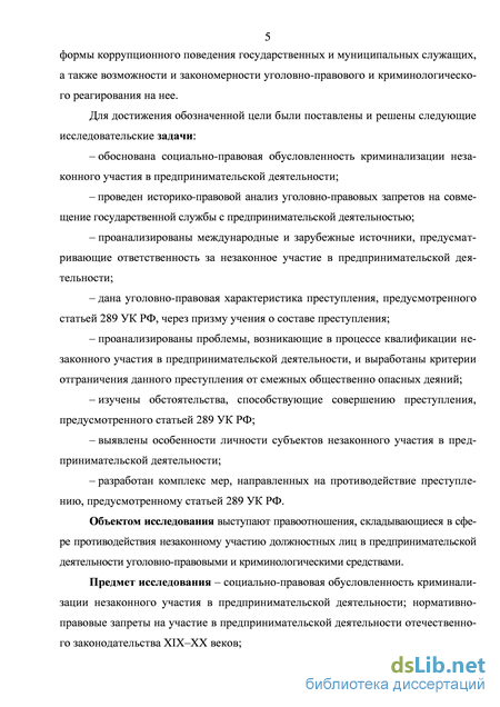Степень научной разработанности темы. Отдельные аспекты преступности и наказуемости должностных преступлений вообще и общественно опасного деяния, предусмотренного статьей 289 УК РФ, в частности, нашли свое отражение в научных трудах А.А. Аслаханова, А.Я. Асниса, Т.В. Басовой, А.Г. Безверхова, Н.И. Верченко, Б.В. Волженкина, А.В. Галаховой, Л.Д. Гаухмана, В.И. Динеки, Н.А. Егоровой, Б.В. Здравомыслова, А.В. Иванчина, С.В. Изосимова, Л.В. Иногамовой-Хегай, П.А. Кабанова, В.С. Комиссарова, А.П. Кузнецова, В.Ф. Кириченко, С.В. Максимова, И.М. Мацкевича, А.И. Рарога, Е.В. Тарасовой, В.И. Тюнина, А.В. Шнитенкова, П.С. Яни и некоторых других авторов. Однако комплексного исследования уголовно-правовых и криминологических проблем, связанных с ответственностью за незаконное участие в предпринимательской деятельности, до сих пор не проводилось.