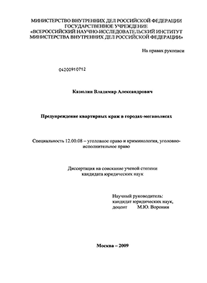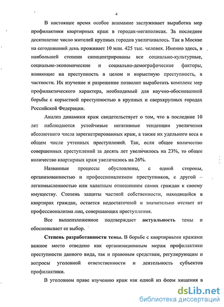 Степень разработанности темы. В борьбе с квартирными кражами важное место отведено как организационным мерам профилактики преступности данного вида, так и правовым средствам, регулирующим и вопросы уголовной ответственности и деятельность субъектов профилактики.