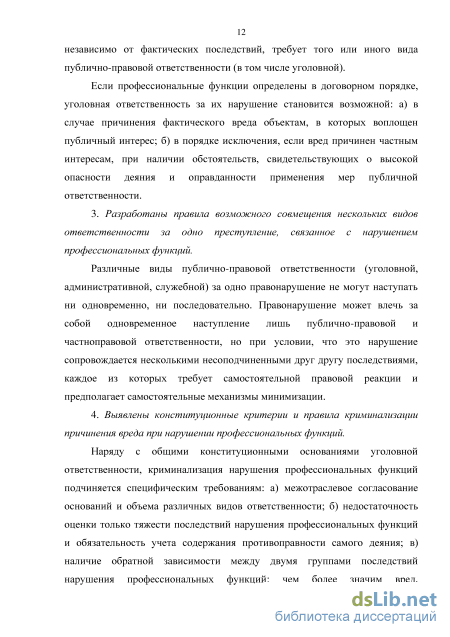 уголовной ответственности за преступления, связанные с нарушением профессиональных функций, которая на основе анализа накопленного опыта их доктринальной и нормативной интерпретации определяла бы перспективы развития теории и практики уголовного права в направлении всестороннего учета специфики профессиональной деятельности при разработке и применении уголовно-правовых конструкций.