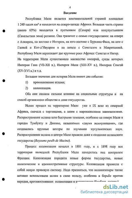 Проблема преступности несовершеннолетних - это вопрос здоровья общества и нации в целом. Республика Мали после победы демократического движения в начале 90-х годов прошлого века поставила перед собой масштабные задачи по охране жизни и здоровья подрастающего поколения. Мали является одной из первых стран, ратифицировавших конвенцию Организации Объединенных Наций по защите прав детей4.