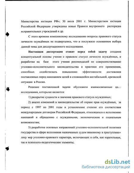 С этого времени комплексному исследованию вопросы правового статуса личности осуждённых не подвергались, что и послужило основанием выбора данной темы для диссертационного исследования.