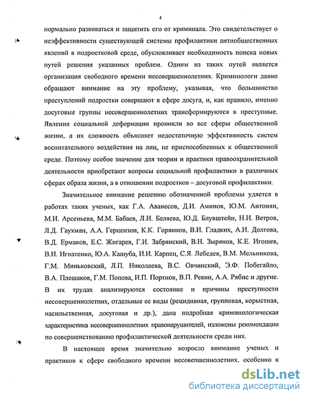 Значительное внимание решению обозначенной проблемы удяется в работах таких ученых, как Г.А. Аванесов, Д.И. Аминов, Ю.М. Антонян, М.И. Арсеньева, М.М. Бабаев, Л.И. Беляева, Ю.Д. Блувштейн, Н.И. Ветров, Л.Д. Гаухман, А.А. Герцензон, К.К. Горяинов, В.И. Гладких, А.И. Долгова, В.Д. Ермаков, Е.С. Жигарев, Г.И. Забрянский, В.Н. Зырянов, К.Е. Игошев, В.И. Игнатенко, Ю.А. Кашуба, И.И. Карпец, С.Я. Лебедев, В.М. Мельникова, Г.М. Миньковский, Л.П. Николаева, B.C. Овчинский, Э.Ф. Побегайло, В.А. Плешаков, Г.М. Попова, И.П. Портнов, В.П. Ревин, А.А. Рябис и другие. В их трудах анализируются состояние и причины преступности несовершеннолетних, отдельные ее виды (рецидивная, групповая, корыстная, насильственная, досуговая и др.), дана подробная криминологическая характеристика несовершеннолепшх правонарушителей, изложены рекомендации по совершенствованию профилактической деятельности среди них.