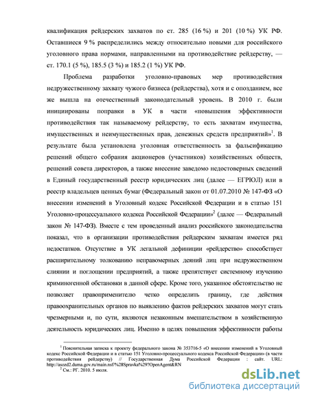 2. Ответственность за рейдерские захваты в уголовном законодательстве Российской Федерации: понятие и система преступных посягательств 66