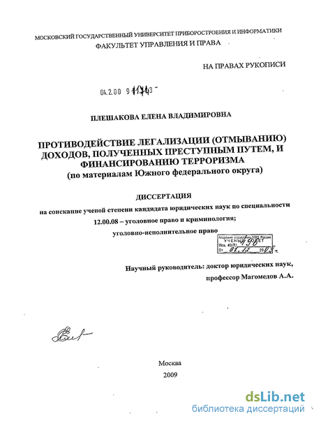 В последние годы защищено значительное количество диссертаций, в которых рассматриваются уголовно-правовые и криминологические аспекты противодействия легализации (отмыванию) доходов, полученных преступным путем. Среди них работы В.А. Бодрова, М.Е. Беляева, Г.С. Захарова, Л.Н. Куровской, О.А. Рыхлова, З.А. Тхайшаова и др. Тем не менее, дальнейшее изучение указанной проблемы не потеряло своей актуальности и на сегодняшний день. Дело в том, что лица, промышляющие «отмыванием» денег, чутко реагируют на меры, предпринимаемые против них, адаптируются под них, моментально усваивают ежедневные технологические достижения в своих противоправных целях. Быстрые перемены непостоянной деловой среды являются идеальным условием для эффективной деятельности преступников. Поэтому необходим постоянный кропотливый анализ механизма совершения подобных деяний, выявление и осмысление происходящих изменений в рассматриваемой сфере, выработка мер противодействия легализации (отмыванию) доходов, полученных преступным путем и финансированию терроризма. Эти обстоятельства и обусловили обращение автора к избранной им теме исследования.