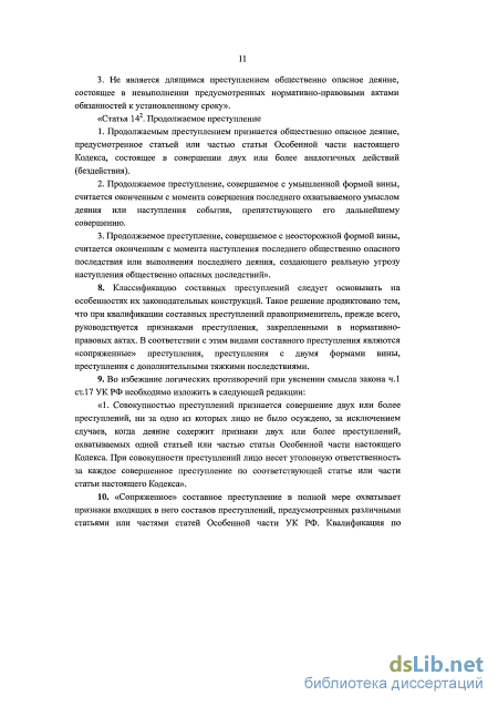 Criminal Code of the Republic of Romania (English version). URL: http://unkl.ru/cZJ (дата обращения: 21.032013). преступным деянием признается одно деяние (действие или бездействие), имеющее признаки состава одного преступного деяния, или двух, или нескольких связанных между собой преступных деяний, которые охвачены единым умыслом виновного лица и которые соответствуют признакам состава только одного преступного деяния»154. Признание на законодательном уровне того, что преступление может содержать несколько составов преступлений, полагаем, является положительным моментом. Вместе с тем указание на соответствие деяния одному составу преступления, с нашей точки зрения, не совсем верно. Преступное деяние, согласно УК Латвии, является единичным, в частности в случае, если в нем содержатся признаки нескольких составов преступлений, но оно отвечает только одному составу преступления. Иными словами, в уголовном законе Латвии признается правомерным тезис о том, что в одном составе преступления возможно содержание нескольких составов преступлений. Однако мы считаем, что состав преступления - это уголовно-правовая категория, имеющая присущие только ей признаки, она не может охватывать несколько тождественных ее содержанию уголовно-правовых категорий. Подробнее этот вопрос будет освещен в следующей главе настоящего исследования.