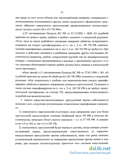 6. Предложения по совершенствованию судебного толкования уголовного законодательства при квалификации совокупности преступлений против собственности: