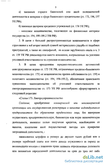 Вместе с тем поступательные финансово-экономические реформы, проводимые в нашей стране России в последнее десятилетие, обусловившие позитивные сдвиги в социально-экономической ситуации, привели к усложнению финансово-экономических отношений - появились новые разновидности финансового мошенничества, посягающие на общественные отношения, связанные с заключением договоров страхования и исполнением обязательств по ним (ст. 159); законный порядок банковской или иной экономической деятельности и интересы в сфере банковского кредитования (ст. 173, 196,197 УК РФ); законные интересы кредитных учреждений (ст. 176 УК РФ); финансовые интересы государства (ст. 194, 198-199.2 УФ РФ).