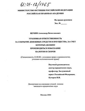 Как важнейший результат диссертационного исследования соискатель расценивает подготовку на его основе научно-методических рекомендаций по применению правовых норм об уголовной ответственности за сокрытие денежных средств и имущества организации или индивидуального предпринимателя, за счет которых должно производиться взыскание налогов и сборов, на основе анализа соответствующих положений налогового законодательства.