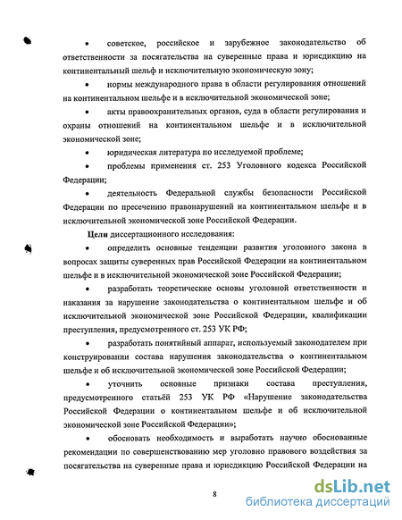 разработать теоретические основы уголовной ответственности и наказания за нарушение законодательства о континентальном шельфе и об исключительной экономической зоне Российской Федерации, квалификации преступления, предусмотренного ст. 253 УК РФ;