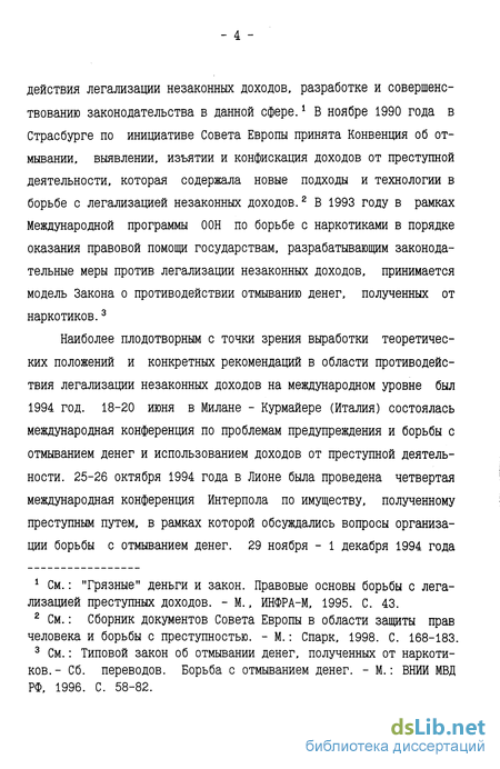 действия легализации незаконных доходов, разработке и совершенствованию законодательства в данной сфере.1 В ноябре 1990 года в Страсбурге по инициативе Совета Европы принята Конвенция об отмывании, выявлении, изъятии и конфискация доходов от преступной деятельности, которая содержала новые подходы и технологии в борьбе с легализацией незаконных доходов.2 В 1993 году в рамках Международной программы ООН по борьбе с наркотиками в порядке оказания правовой помощи государствам, разрабатывающим законодательные меры против легализации незаконных доходов, принимается модель Закона о противодействии отмыванию денег, полученных от наркотиков.3