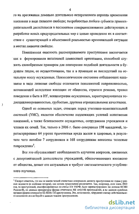 Все это обуславливает необходимость изучения вопросов, связанных с дезорганизацией деятельности учреждений, обеспечивающих изоляцию от общества, делает его актуальным и требует систематического углубленного изучения,
