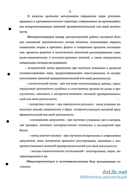 Методологическую основу диссертационной работы составили базовые положения диалектического метода познания, позволяющие отразить взаимосвязь теории и практики, формы и содержания предмета исследования, процессы развития и качественных изменений рассматриваемых социально-экономических и уголовно-правовых явлений, а также совокупность специальных методов исследования: