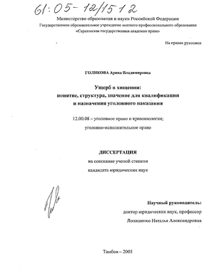 Цели и задачи исследования. Целью настоящего исследования является разработка научно обоснованной концепции ущерба в хищении, выявление его структуры, уяснение значения в квалификации преступлений, предусмотренных статьями 158 - 161 УК РФ, внесение предложений по совершенствованию законодательства при описании ущерба. Поставленная цель конкретизируется в следующих задачах: