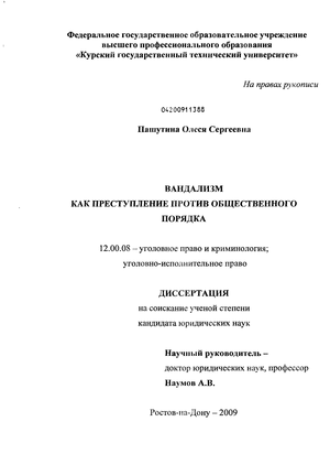 - учитывая дискуссионность вопроса об объекте вандализма, исходя из личного анализа автором природы проявлений вандального поведения, подвергается критике существующее в доктрине уголовного права мнение большинства авторов, согласно которому непосредственным объектом вандализма выступает общественная нравственность, и отстаивается целесообразность помещения законодателем состава вандализма.в главу 24 УК РФ;