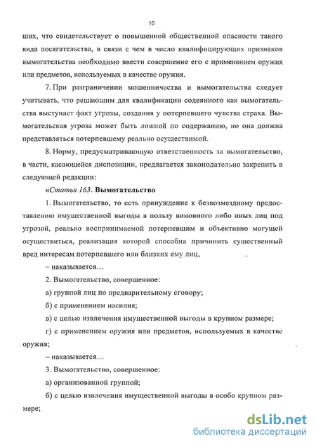 ив 2010 году. С января по ноябрь 2010 года зафиксировано 5985 случаев вымогательств, что на 23,5% меньше числа вымогательств, зафиксированных за этот же период 2009 года. Однако количество совершенных вымогательств по-прежнему остается довольно высоким, что обусловливает необходимость исследования данного преступления. Кроме того, речь идет только о выявленных фактах вымогательства.