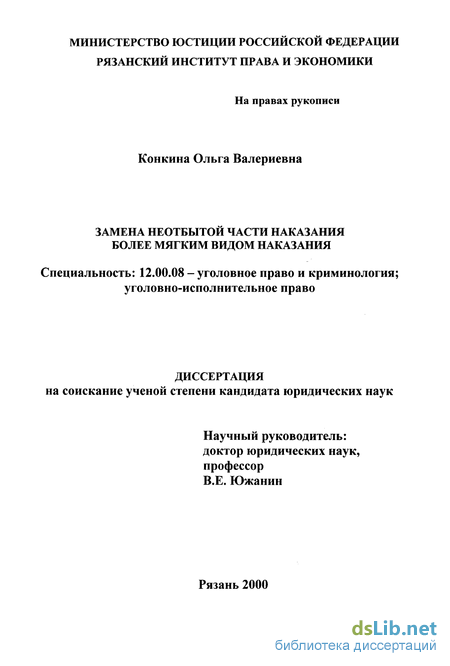 Глава 1. Понятие и юридическая природа института замены не отбытой части наказания более мягким видом наказания .