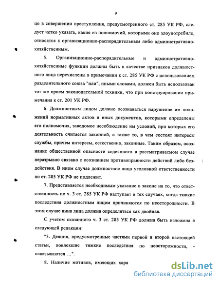 определение подходов следственной и судебной практики к решению наиболее острых проблем уголовно-правовой. квалификации преступления, предусмотренного ст. 285 УК РФ;