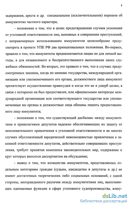 Глава II. Характеристика отдельных видов иммунитетов в уголовном процессе