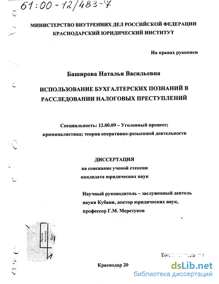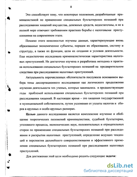 чения существующей системы рыночных отношений, криминалистической характеристики налоговых преступлений, возможностей использования специальных бухгалтерских познаний при их расследовании и предупреждении,