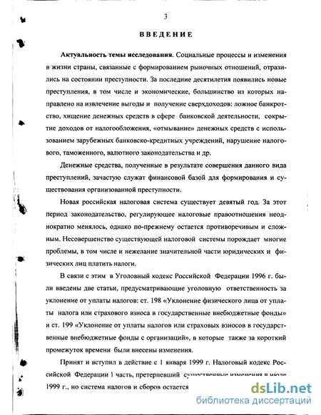 Актуальность темы исследования. Социальные процессы и изменения в жизни страны, связанные с формированием рыночных отношений, отразились на состоянии преступности. За последние десятилетия появились новые преступления, в том числе и экономические, большинство из которых направлено на извлечение выгоды и получение сверхдоходов: ложное банкротство, хищение денежных средств в сфере банковской деятельности, сокрытие доходов от налогообложения, «отмывание» денежных средств с использованием зарубежных банковско-кредитных учреждений, нарушение налогового, таможенного, валютного законодательства и др.