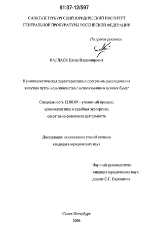 2) используя системный подход к изучению и описанию преступления как явления реальной действительности разработал криминалистическую характеристику хищения путем мошенничества с использованием ценных бумаг;