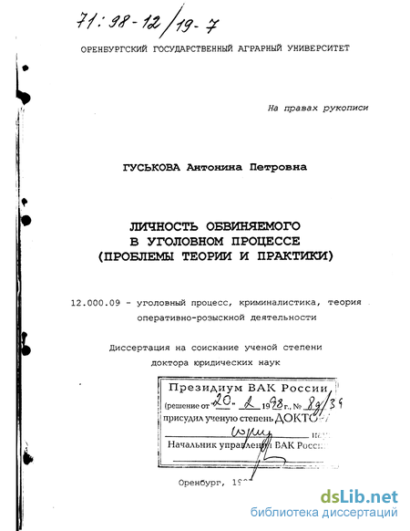 В диссертации приводится теоретическое и практическое обоснование категории личности обвиняемого во взаимосвязи с проводимым реформированием деятельности законодательных, судебно-следственных органов по созданию надежного механизма социальной и юридической защиты прав человека, его свобод, законных интересов.
