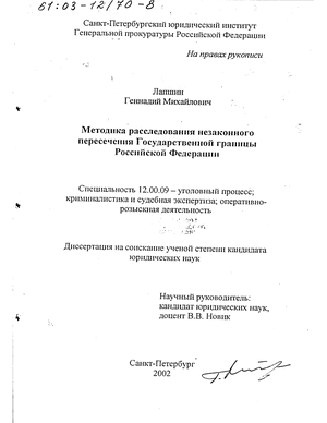 Диссертация подготовлена на кафедре криминалистики Санкт-Петербургского юридического института Генеральной Прокуратуры Российской Федерации.
