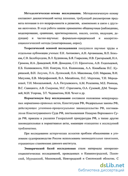 Нормативную базу исследования составили положения международных нормативно-правовых актов, Конституция РФ, Федеральные законы РФ, действующее уголовно-процессуальное законодательство РФ, постановления Конституционного Суда РФ, постановления Пленума Верховного Суда РФ; приказы и указания Генеральной прокуратуры РФ, а также другие законодательные и нормативные акты, имеющие отношение к исследуемой проблематике.