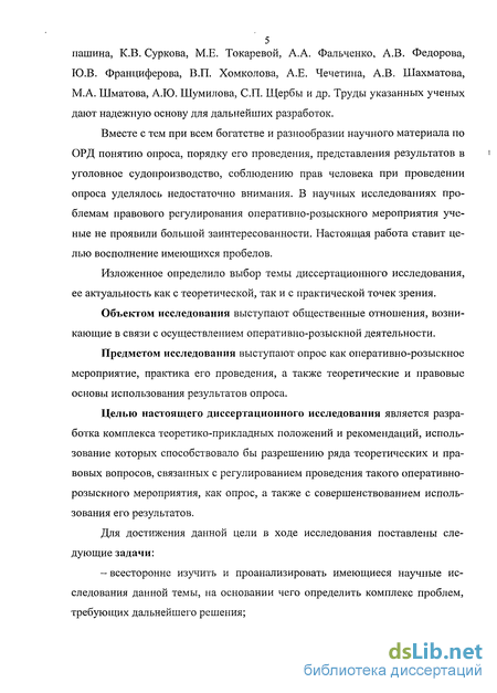 Целью настоящего диссертационного исследования является разработка комплекса теоретико-прикладных положений и рекомендаций, использование которых способствовало бы разрешению ряда теоретических и правовых вопросов, связанных с регулированием проведения такого оперативно-розыскного мероприятия, как опрос, а также с совершенствованием использования его результатов.