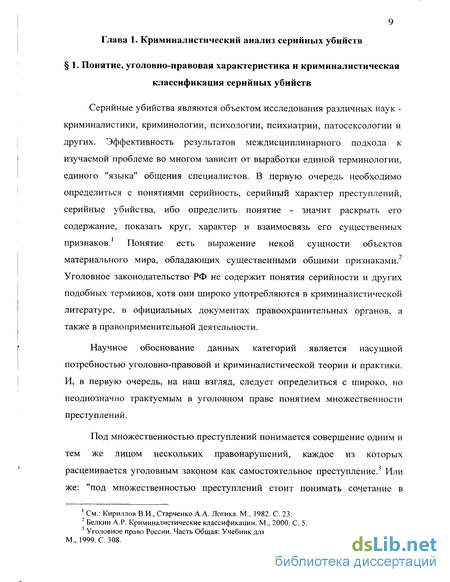 1. Понятие, уголовно-правовая характеристика и криминалистическая классификация серийных убийств 9