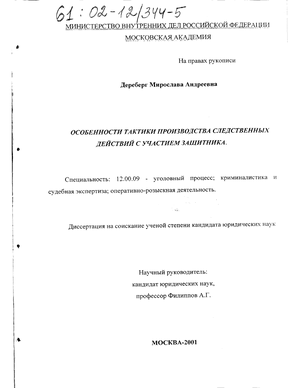 Несмотря на большую практическую значимость проблемы, особенности тактики производства следственных действий с участием защитника в криминалистической литературе мало исследованы. В изданных за последние годы работах1, а также в диссертационных исследованиях, " посвященных участию защитника в предварительном следствии, эти вопросы исследуются либо в уголовно-процессуальном аспекте, либо с позиции защитника. Исследований, которые содержали бы научно-обоснованные криминалистические рекомендации, учитывающие законодательные новеллы последних лет и помогающие следователю эффективно проводить расследование при участии защитника, в настоящее время почти нет.