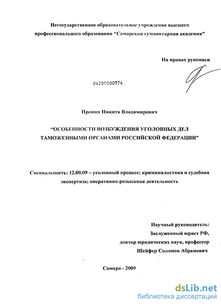 возбуждения уголовных дел о таможенных преступлениях В своих работах