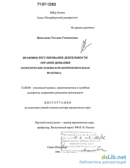 Санкт-Петербургском юридическом институте Генеральной прокуратуры РФ в период 1998-2006), результаты изучения по специально разработанным методикам 400 уголовных дел, более 100 актов прокурорского реагирования на законность и обоснованность принимаемых решений органами предварительного расследования.