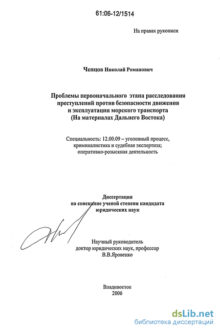 Глава II. Уголовно-процессуальные особенности расследования дел в сфере безопасности движения и эксплуатации морского транспорта