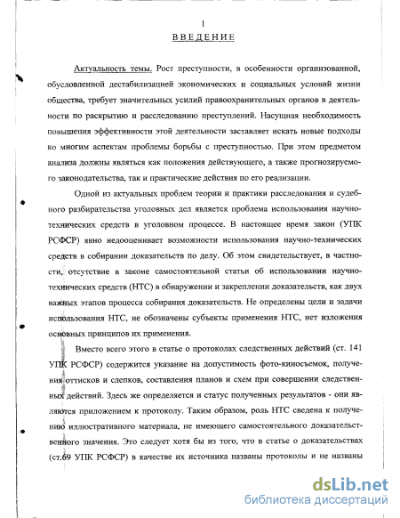 Все вышеизложенное определило выбор темы исследования, как темы, несомненно, актуальной, позволяющей надеяться, что при изменении отношения законодателя к использованию научно-технических средств в уголовном процессе правоохранительные органы получат существенную поддержку в использовании современных НТС в деле доказывания.