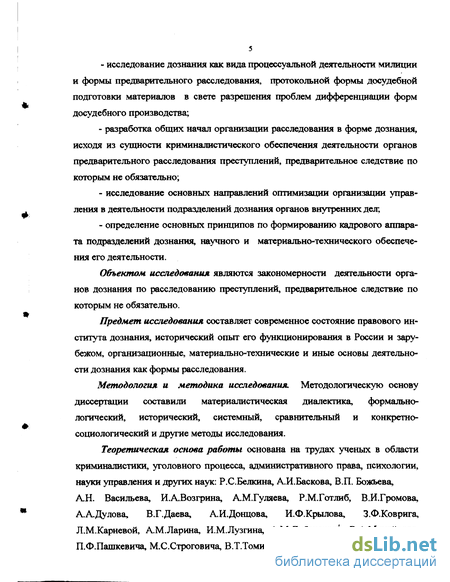 Одним из факторов, обусловившим актуальность темы исследования является то, что в течение последних пяти лет подразделения дознания подвергались ряду реорганизационных мероприятий и лишь небольшой период их деятельности в 1,5-2 года можно рассматривать как период стабилизации. В то же время после реорганизации их деятельность не подвергалась научным исследованиям. В 1995 и 1998 годах были подготовлены кандидатские диссертации Э.В. Рейтенбахом и Н.П. Печниковым, однако они не в полной мере затрагивали вопросы деятельности органов дознания.1 Отдельным аспектам деятельности посвящены лишь немногочисленные статьи2. Указанные проблемы обусловили выбор диссертационного исследования.