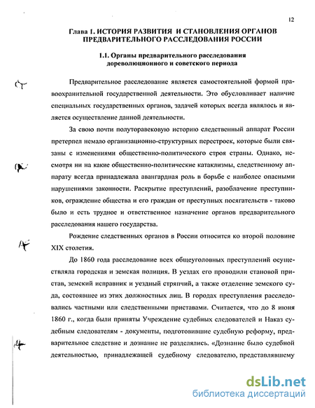 1.1 Органы предварительного расследования дореволюционного и советского периодов 12