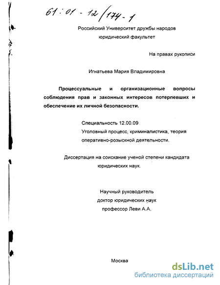 Много диссертационных работ, посвященных проблеме обеспечения прав и законных интересов потерпевших подготовлено 20-25 лет тому назад (Юрченко В.Е.- 1972 г., Силичева Н.П. - 1974 г., Ильина Л.В. - 1975 г., Савинов В.И. - 1978 г.). Из современных работ на эту и близкие темы нам известны лишь диссертация П,С. Яни - 1995 г., А.А. Жидких (1998 г.), М.В. Танцерева (1999 г.) На тему обеспечения безопасности участников уголовного процесса в 1994 году защищена кандидатская диссертация Марченко С.Л. и по проблеме защиты жертв преступлений (по материалам зарубежной практики) в 1995 году защитила кандидатскую диссертацию Л.Г. Вавилова. Особо важное значение в разработке указанных вопросов имеет докторская диссертация О.А. Зайцева «Теоретические и правовые основы государственной защиты участников уголовного судопроизводства в Российской Федерации» (1999 г.).В более широком плане по проблемам жертв преступлений довольно много писали А.Д. Бойков, , Л.М. Володина, А.Б. Соловьев, П.А. Лупинская, Т.Н. Москальнова, А.Я. Сухарев, В.Н. Полубинский, СП. Щерба. В криминалистическом плане роль потерпевшего подробно рассматривалась Е.Е. Центровым.