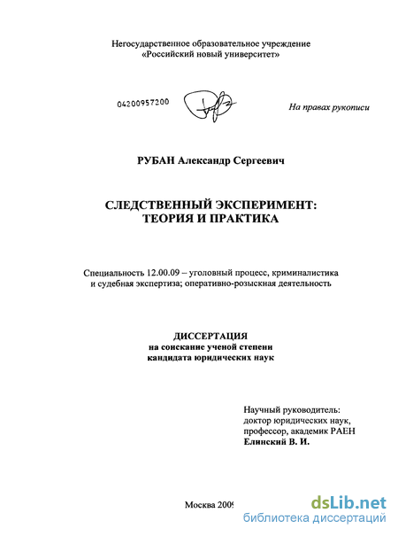 Степень научной разработанности темы исследования. Первыми диссертационными исследованиями, посвященными проблемам следственного эксперимента, стали работы Л. Е. Ароцкера и Н. И. Гуковской1, в которых на основе подробного анализа взглядов ведущих ученых-процессуалистов был сделан однозначный вывод о том, что следственный эксперимент является самостоятельным следственным действием.