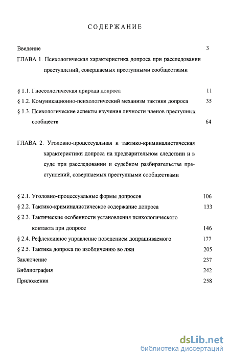 ГЛАВА 1. Психологическая характеристика допроса при расследовании преступлений, совершаемых преступными сообществами