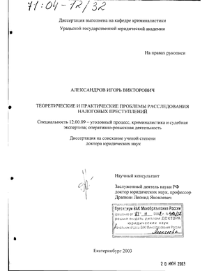 с анализом всех видов налоговых преступлений, основ деятельности по их выявлению и методике расследования преступлений, на диссертационном уровне не проводилось. Эти вопросы потребовали дополнительного, углубленного, всестороннего и комплексного исследования.