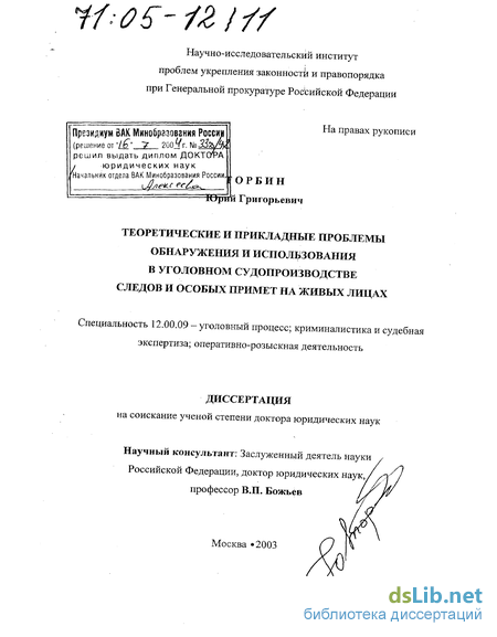 Разработан комплекс предложений, связанных с дальнейшим совершенствованием уголовно-процессуальных норм, регламентирующих процесс собирания, проверки и оценки доказательств, полученных при производстве следственных действий, направленных на обнаружение и фиксацию следов и особых примет на живых лицах.