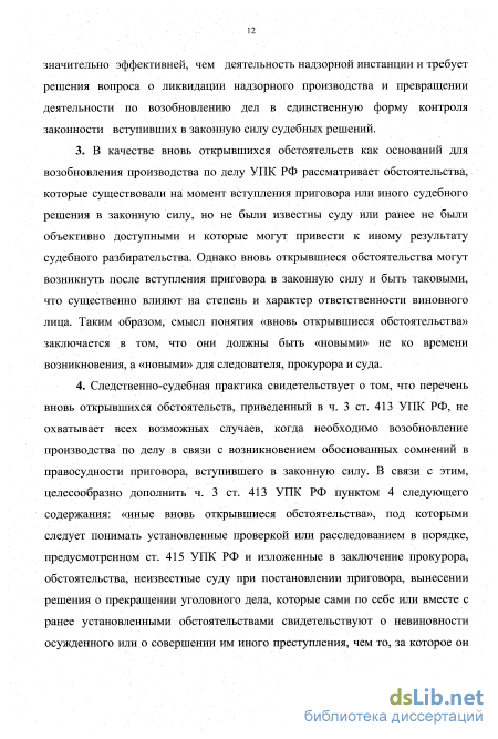 Многие ученые-процессуалисты рассматривают указанную деятельность как исключительную разновидность пересмотра судебных решений1, или факультативную, исключительную стадию уголовного судопроизводства . Факультативность этой стадии связывается с тем, что возобновление производства в данном процессуальном порядке возможно лишь ввиду открытия (установления) новых или вновь открывшихся фактов, предусмотренных ч.ч.З и 4 ст. 413 УПК РФ. Вне действительного наличия названных обстоятельств возобновление производства по делу в указанном порядке недопустимо .