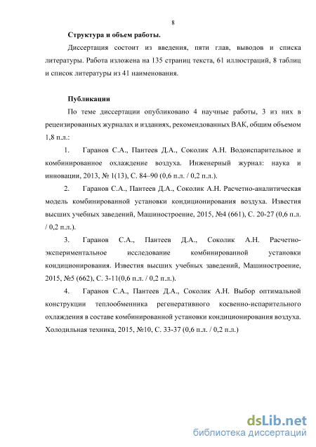 Методы исследования. Использовались теоретические методы исследования работы УКВ при различных условиях окружающей среды. Расчет схемы УКВ проводился с помощью балансовых уравнений и теоретических зависимостей свойств влажного воздуха. Для подтверждения теоретических выводов результаты теоретических исследований сравнивались с экспериментальными данными, полученными автором диссертационной работы.